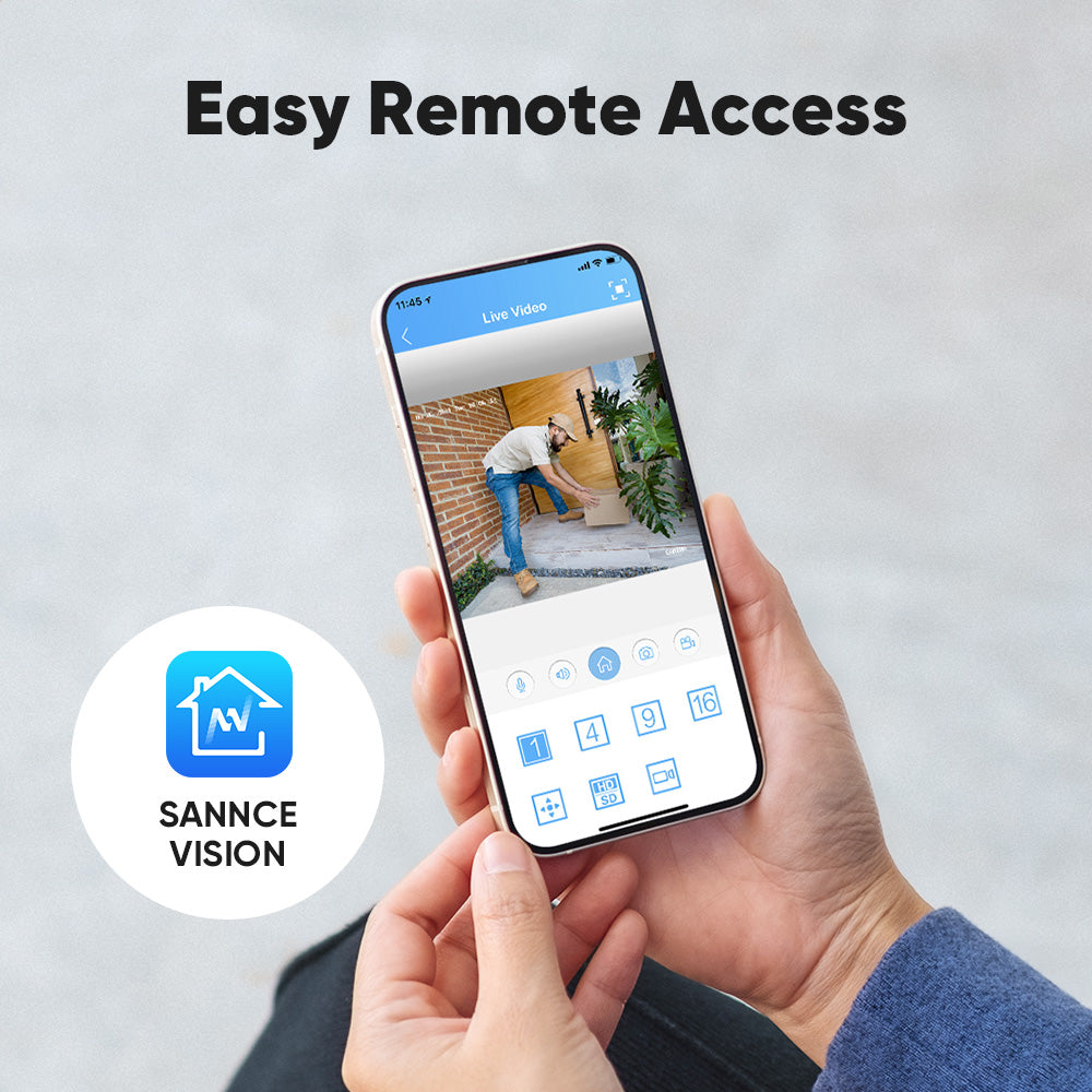 Genießen Sie uneingeschränkte Fernsteuerung über die kostenlose Sannce Vision App oder Software auf Ihren Computern, Browsern, Telefonen oder Tablets. Bei ungewöhnlichen Bewegungen können Sie per App-Push oder E-Mail-Benachrichtigung alarmiert werden. Verpassen Sie nie wieder einen wichtigen Clip!