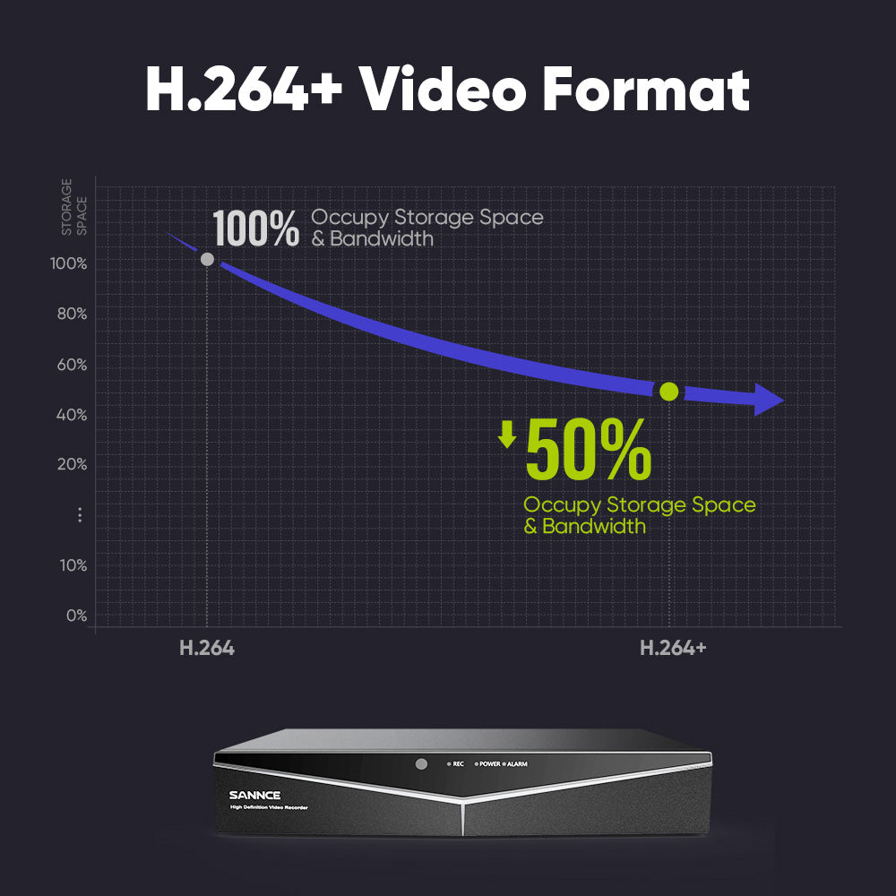 Der leistungsstarke 5-in-1-DVR kann mit allen SANNCE- und Drittanbieter-Kameras integriert werden. Dank der Kompatibilität können Sie bis zu 16 analoge oder IP-Kameras in das intelligente DVR-System einbinden, ohne dass es eine Hardware-Beschränkung gibt.