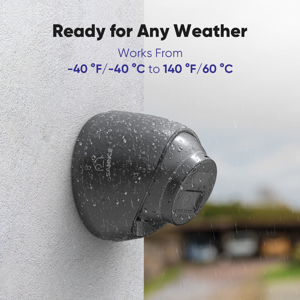 Dank IP67-Wetterfestigkeit widersteht das Kamerasystem allen Wetterbedingungen (-40 °C bis 60 °C / -40 °F bis 140 °F), egal ob Schneestürme, Hagel oder Hitze. Ein verlässlicher Partner für Ihre Haussicherheit.